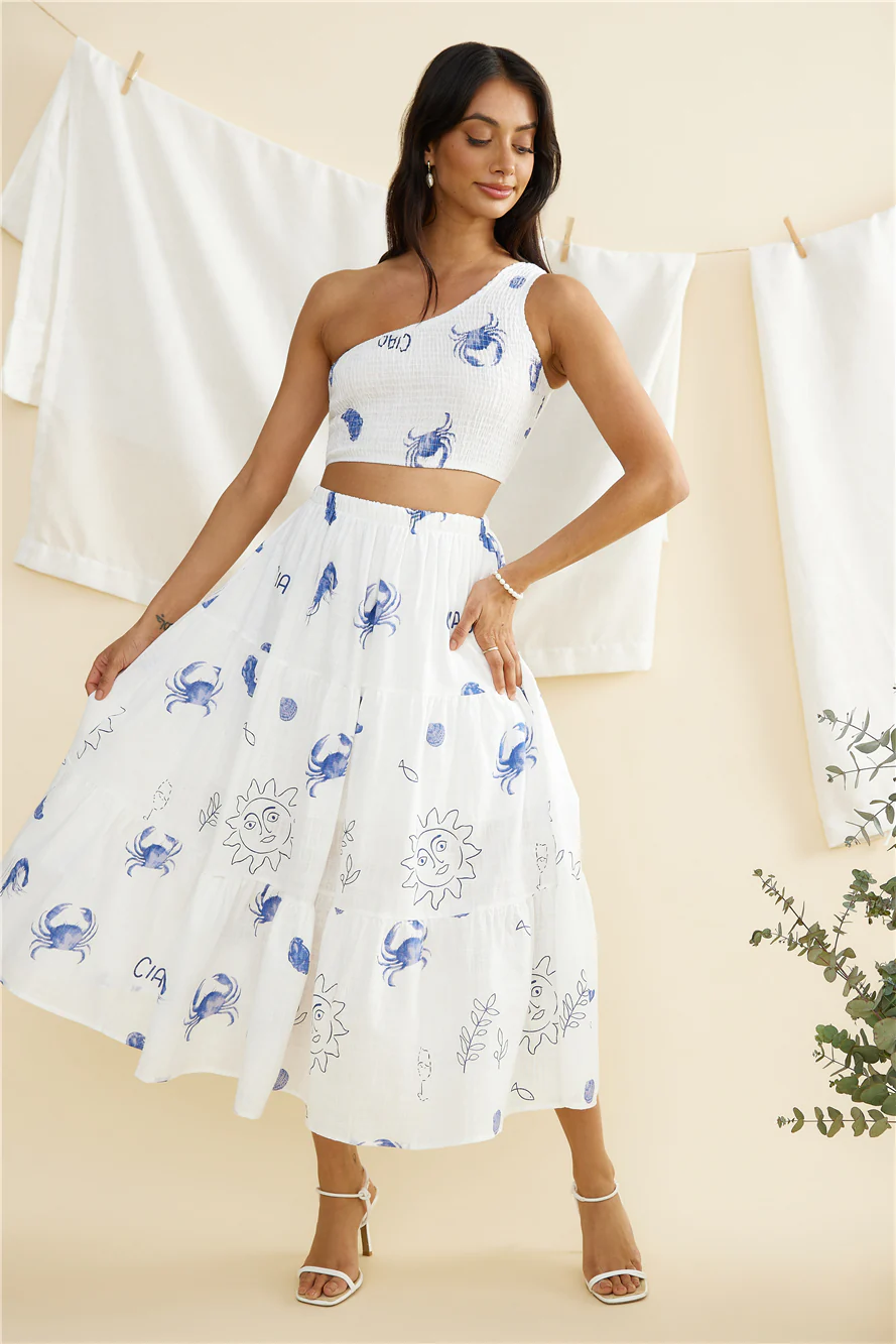 Andiamo! Let's go down to the Italian Coast, the only question is... Portifino or Amalfi? Feel the sun on your skin and the wind through your hair as you wear the Andiamo Set in Blue on your day by the coast. Pair with black sandals and silver adornments.