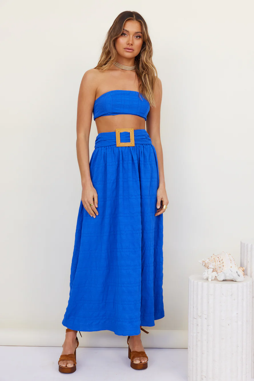 We're finding ourselves among the stars in the Hundred Years Crop Top. Pair yours with the matching maxi skirt, neutral block heels, and style with wavy hair for your next day or night by the water.