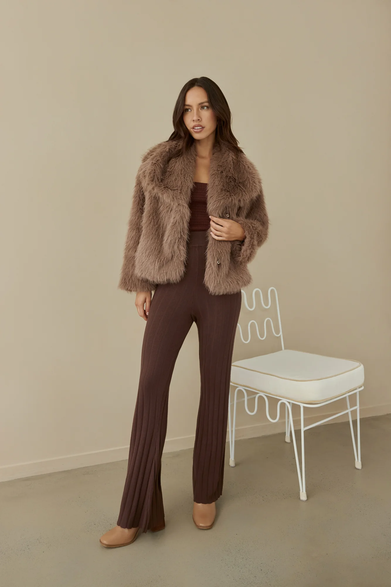 Snowflakes Falling Faux Fur Coat Brown